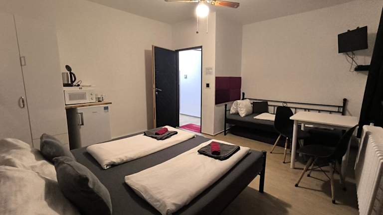 Die Unterkunft verfügt über verschiedene Wohneinheiten, von denen einige mit einem Satelliten-Flachbild-TV und einer voll ausgestatteten Küche mit Kühlschrank ausgestattet sind. Ein gemeinsames Bad mit Dusche und kostenlosen Pflegeprodukten steht ebenfalls zur Verfügung. Bettwäsche, Handtücher und Wäsche werden nach den Richtlinien der örtlichen Behörden gewaschen.