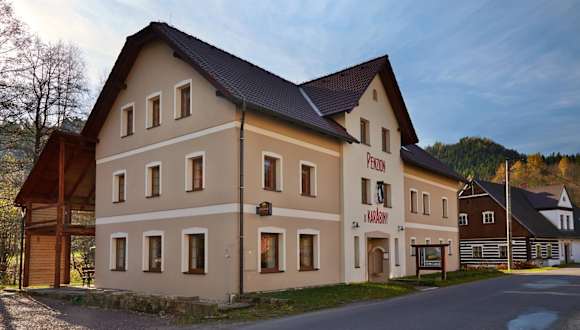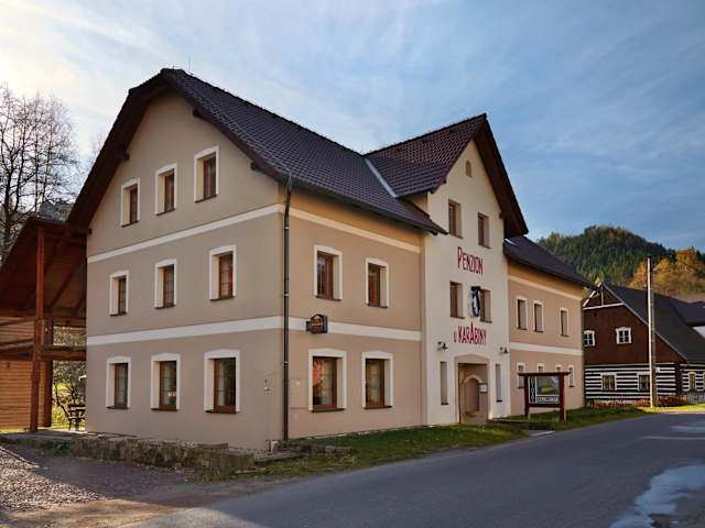 Die Penzion U Karabiny ist eine Nichtraucherunterkunft, die Übernachtungsmöglichkeiten mit einer Terrasse und einer Bar bietet. Die Pension ist familienfreundlich und verfügt über einen kostenlosen Privatparkplatz für Gäste. Junggesellen- und Junggesellinnenabschiede sowie ähnliche Feiern sind nicht erlaubt, was eine ruhige und entspannte Atmosphäre sichert.