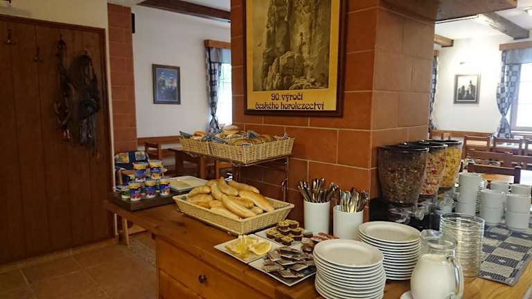 In der Penzion U Karabiny wird ein kontinentales oder ein Buffetfrühstück angeboten, sodass Gäste eine Auswahl an Speisen geniessen können. Die hauseigene Bar bietet zudem die Möglichkeit, sich mit Getränken zu erfrischen.