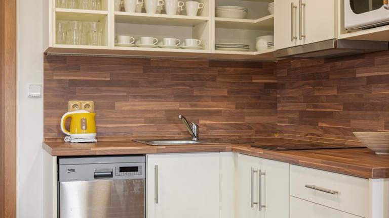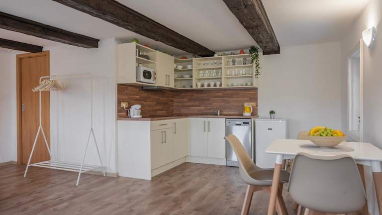 In der Unterkunft stehen eine Küche mit Kühlschrank, Geschirrspüler, Mikrowelle und Kaffeemaschine zur Verfügung, wodurch sich die Gäste selbst verpflegen können. Eine Gartenlandschaft lädt zur Entspannung ein.