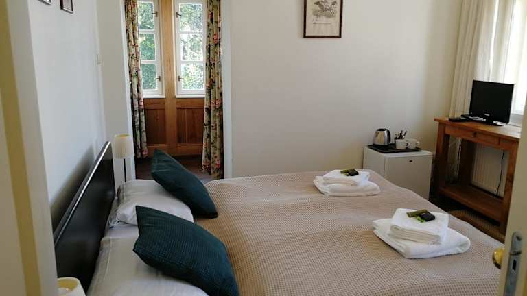 Die Penzion Vila Elektra bietet Ihnen einen charmanten Aufenthalt im Herzen von Bechyně. Das Hotel besticht durch seine zentrale Lage, umgeben von Parks und einem Klostergarten. Genießen Sie den Komfort geräumiger Zimmer und Suiten im Stil der 1920er Jahre, die mit modernen Annehmlichkeiten ausgestattet sind. Starten Sie Ihren Tag mit einem leckeren Frühstück und nutzen Sie das kostenfreie WLAN. Das Hotel verfügt zudem über ein Café mit Terrasse und ein Restaurant. Erkunden Sie die Umgebung und besuchen Sie Sehenswürdigkeiten wie das Schloss Bechyně und die Klosterkirche Mariä-Himmelfahrt. Der Bahnhof und die Bushaltestelle sind nur einen kurzen Spaziergang entfernt und ein kostenloser Shuttleservice steht Ihnen auf Anfrage zur Verfügung. Parkplätze sind an der Unterkunft vorhanden.