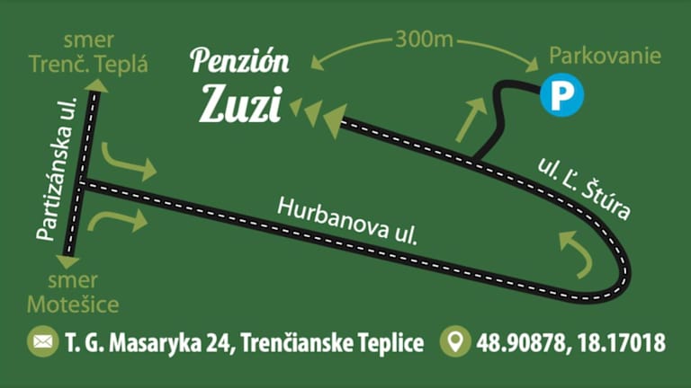 Die Penzión Zuzi liegt in Trenčianske Teplice, 47 km von der Burg Beckov entfernt. Der nächstgelegene Flughafen ist der Flughafen Piešťany, welcher 57 km von der Unterkunft entfernt ist.