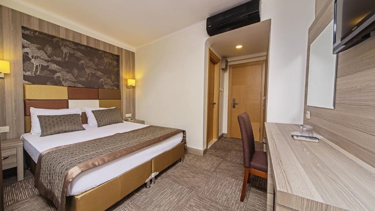 Die Zimmer im Pera Arya Hotel sind modern und komfortabel eingerichtet. Jedes Zimmer verfügt über eine Klimaanlage, einen Flachbild-TV und eine Minibar. Ein eigenes Bad mit Dusche oder Badewanne, Haartrockner und Bademänteln ist ebenfalls vorhanden. WLAN nutzen Sie in den Zimmern kostenfrei.