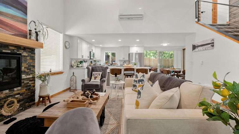 Perch - Cozy Pines bietet Übernachtungsmöglichkeiten in einem heimeligen Ferienhaus. Die Unterkunft ist mit einem Whirlpool ausgestattet und im ganzen Haus steht kostenloses Wifi zur Verfügung.