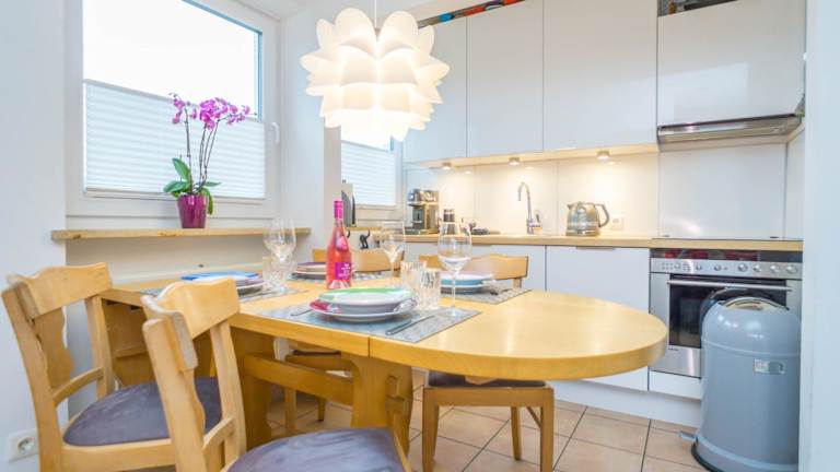 Die Ferienwohnung verfügt über zwei Schlafzimmer, ein Wohnzimmer und eine voll ausgestattete Küche mit Kühlschrank und Kaffeemaschine. Des Weiteren steht ein Badezimmer mit Badewanne und kostenlosen Pflegeprodukten zur Verfügung. Handtücher und Bettwäsche werden gestellt.