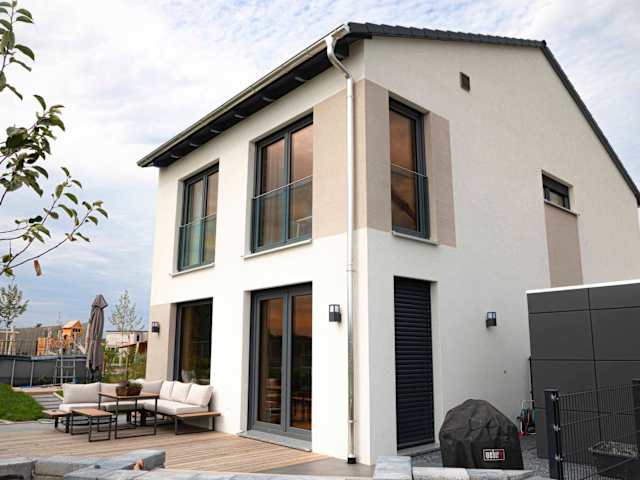 Das Ferienhaus 'Perfekter Rückzugsort - Probewohnen im Musterhaus' bietet eine Übernachtungsmöglichkeit in einer ruhigen und bequem gelegenen Umgebung. Die Unterkunft verfügt über eine Veranda/Patioterrasse, einen Garten sowie kostenlosen Privatparkplatz.