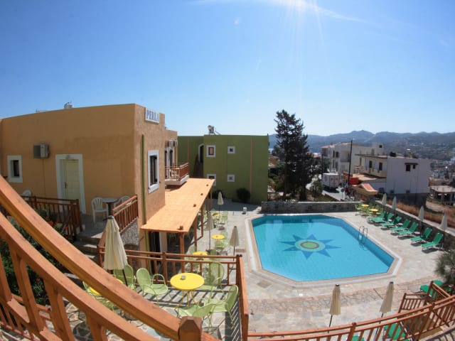 Die Perla Apartments befinden sich im Zentrum des beliebten Ferienortes Agia Pelagia, nordwestlich von Heraklion. Die Entfernung zum Sandstrand beträgt etwa 300 Meter, das Stadtzentrum und der Flughafen sind ca. 300 und 25 Kilometer entfernt.