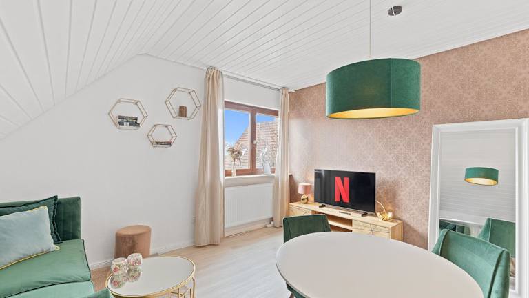 Die Ferienwohnung bietet ein Schlafzimmer, einen Flachbild-TV sowie eine gut ausgestattete Küche mit Kühlschrank und Ofen. Zudem steht ein Badezimmer mit Dusche zur Verfügung. Handtücher und Bettwäsche werden zur Verfügung gestellt.