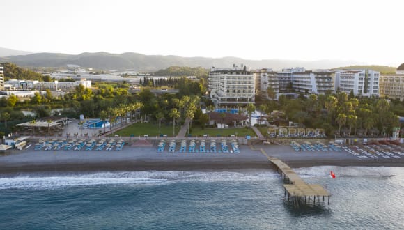 Das Perre Delta Resort & Spa befindet sich in der zentralen Lage des Ortes Okurcalar. Die öffentlichen Verkehrsmittel sind nur ca. 100 m entfernt. In der Nähe gibt es vielfältige Einkaufsmöglichkeiten, zahlreiche Restaurants, Bars und Cafés sowie andere Unterhaltungsangebote. Der Flughafen Antalya liegt ca. 95 km entfernt und ist bequem mit dem Auto oder den öffentlichen Verkehrsmitteln erreichbar. Der Strand besteht aus Kieselsteinen und Sand.