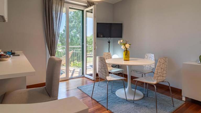 Die Ferienwohnung umfasst 2 Schlafzimmer, ein Wohnzimmer sowie eine voll ausgestattete Küche mit Kühlschrank und Kaffeemaschine. Des Weiteren stehen ein Badezimmer mit Bidet und Dusche samt bereitgestellten Handtüchern und Bettwäsche zur Verfügung. Ein Balkon lädt zum Verweilen ein.