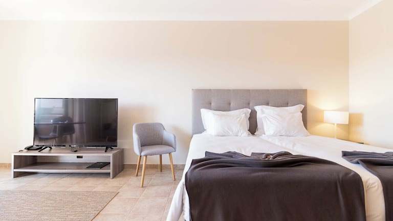 In den Zimmern der Pestana Gramacho Residences finden die Gäste eine Küche oder Küchenzeile, ein Badezimmer und ein gemütliches Wohnzimmer vor. Deren Ausstattung umfasst eine Klimaanlage, Heizung, einen Balkon oder eine Terrasse mit Bergblick, einen Kühlschrank, eine Mikrowelle und eine Kaffeemaschine. Die Badezimmer sind mit Dusche und Badewanne eingerichtet, und zur Unterhaltung stehen ein TV und Wifi zur Verfügung. Für zusätzliche Bequemlichkeit gibt es ebenfalls ein Hauswirtschaftsgerät und verschiedene Zimmerkategorien, darunter Nichtraucher- und Raucherzimmer sowie rollstuhlgerechte Zimmer.