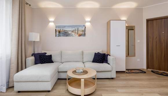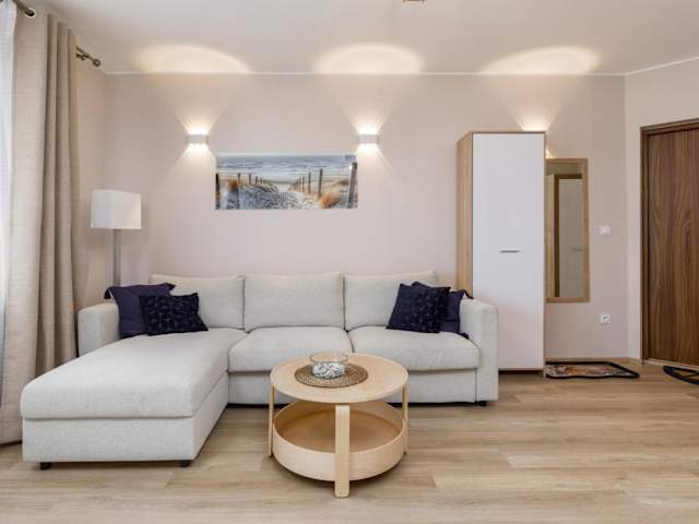 Die Unterkunft befindet sich in Darłówko, 900 m vom Oststrand entfernt. Der Weststrand ist 1,4 km entfernt und der Strand Bursztynowa Przystań liegt 2,7 km von der Ferienwohnung entfernt. Der Aquapark Jarosławiec ist 22 km entfernt, während das Schloss der Herzog von Pommern 2,8 km entfernt ist. Der nächstgelegene Flughafen ist der Lech-Wałęsa-Flughafen Danzig, 161 km entfernt.