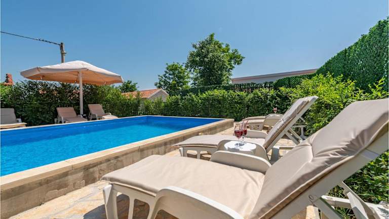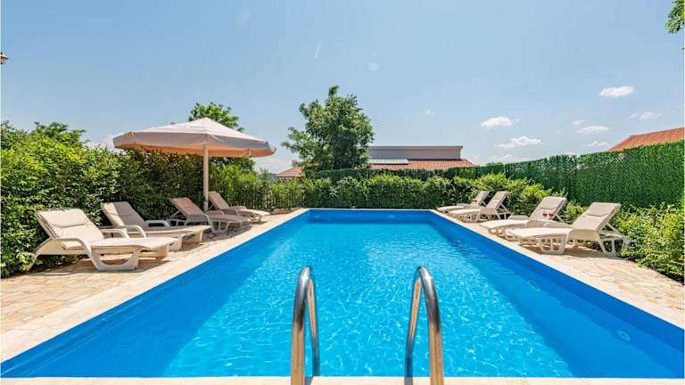 Die Unterkunft verfügt über einen eigenen Aussenpool, der Gästen zur Verfügung steht. Zudem gibt es Outdoorspielgeräte für Kinder im Garten.