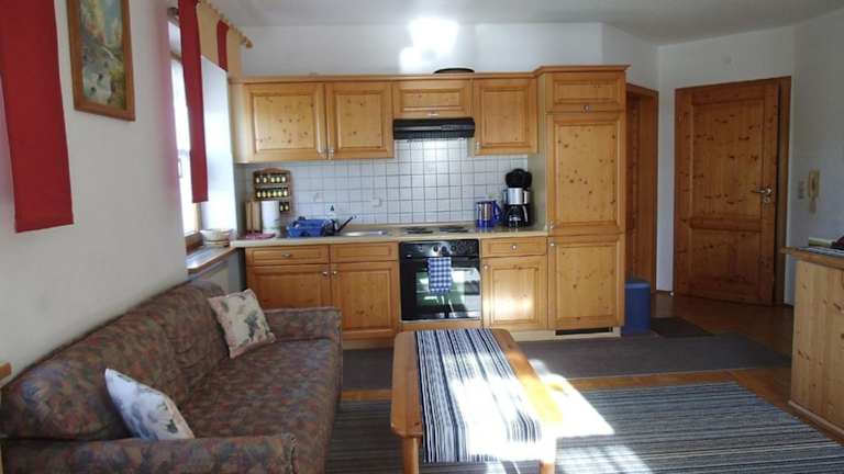 Die Ferienwohnungen sind mit einer eigenen Küchenzeile ausgestattet. Diese beinhaltet einen Kühlschrank, Geschirrspüler, Ofen, Mikrowelle, Herdplatte, Toaster und Kaffeemaschine, was eine selbständige Verpflegung ermöglicht. Grillmöglichkeiten sind ebenfalls vorhanden.