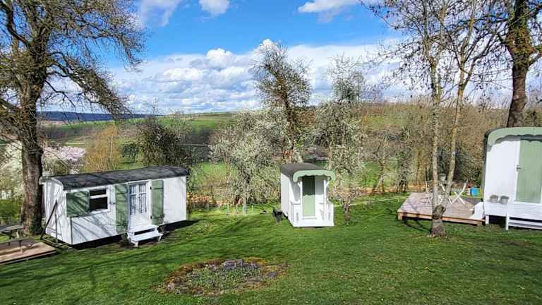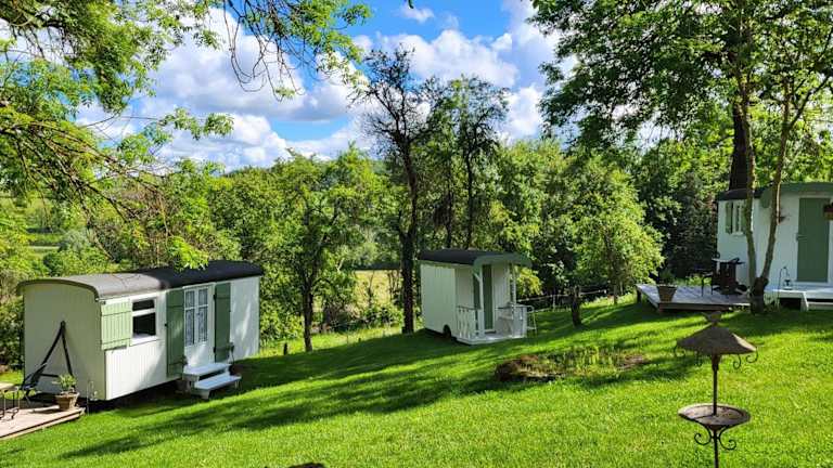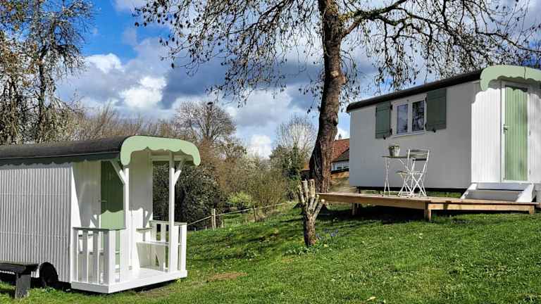 Petit a Petit - gypsy wagons and Bell tents in der Bourgogne bietet gemütliche und einzigartige Übernachtungsmöglichkeiten in einem Gartenambiente. Die Unterkunft zeichnet sich durch eine Terrasse und eine Gemeinschaftsküche aus, die den Gästen Bequemlichkeit bieten.