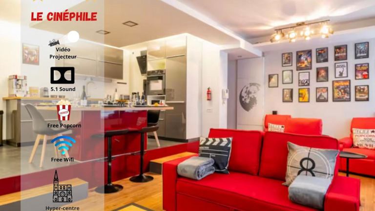 Le Cinéphile - PopCorn, plancha, et confort 6 pers ist eine moderne Ferienwohnung, die für einen angenehmen Aufenthalt sorgt. Die Unterkunft bietet kostenloses Wifi sowie einen Conciergeservice, welcher zusätzliche Bequemlichkeiten für die Gäste bereitstellt.