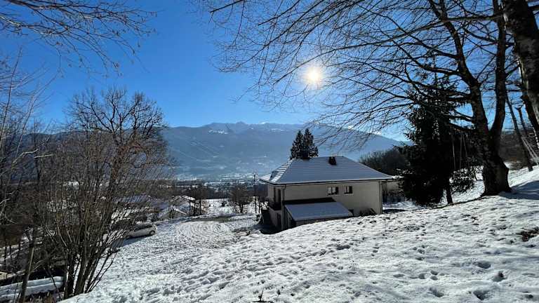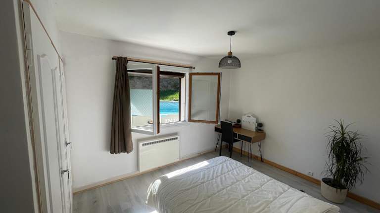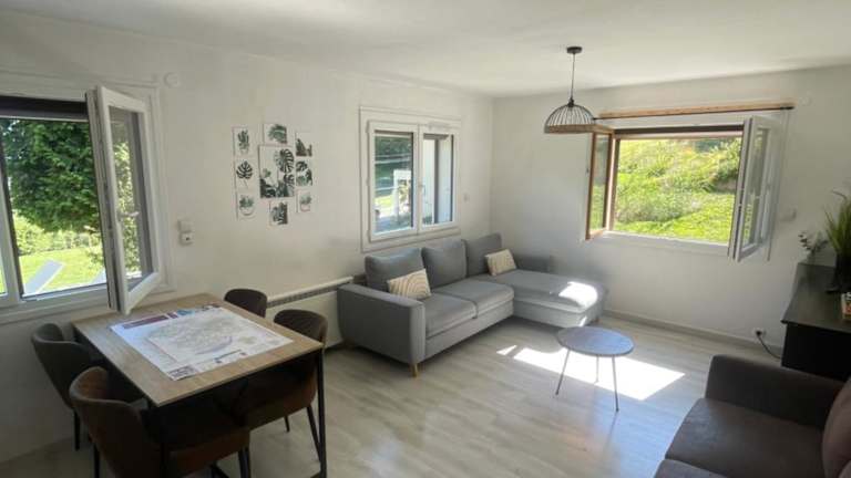 Das Petit logement cosy dans maison au calme bietet eine heimelige Atmosphäre mit einem Garten. Die Unterkunft besticht durch ihre ruhige Lage und ist ideal für Gäste, die die Natur und Berglandschaften schätzen. Die Ferienwohnung umfasst eine Terrasse mit Blick auf die Berge.