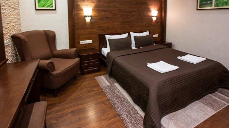 Das Hotel Petrani Central befindet sich in Kiew, nur 10 Gehminuten vom U-Bahnhof Vokzalna entfernt. Innerhalb von 3 U-Bahn-Stationen erreichen Gäste die Hauptstrasse Khreschatyk sowie den Platz Maidan Nezalezhnosyi. In der Umgebung findet man verschiedene Cafés in einer Gehzeit von ca. 10 Minuten und der Botanische Garten liegt 2 km entfernt. Der Bahnhof Kiew ist 750 m und der Flughafen Boryspil etwa 39 km entfernt.