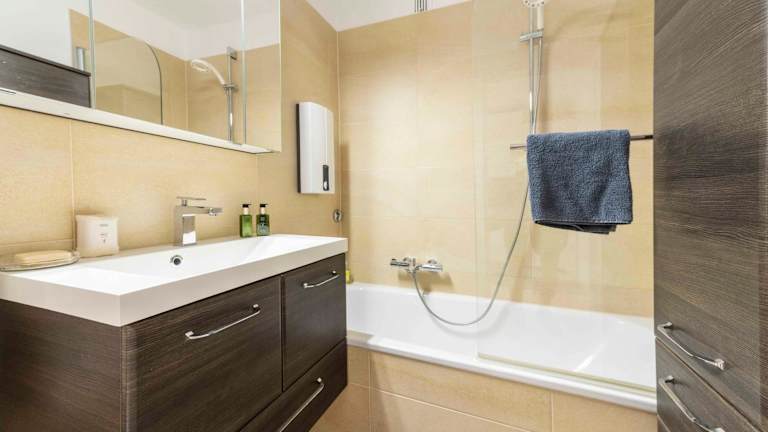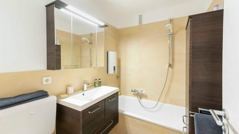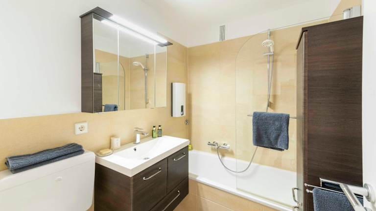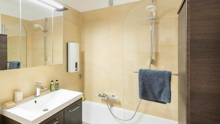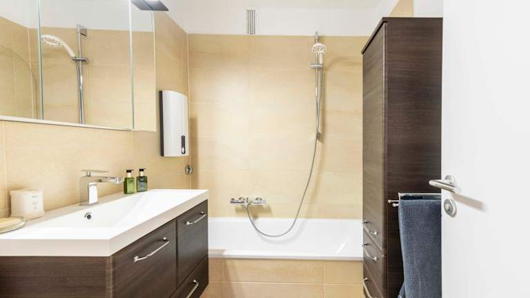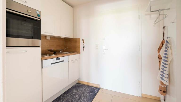 Die Ferienwohnung verfügt über 1 Schlafzimmer, ein Wohnzimmer und eine gut ausgestattete Küche mit Kühlschrank und Geschirrspüler. Ein Flachbild-TV, ein Badezimmer mit Badewanne sowie Terrasse und Seeblick sind ebenfalls vorhanden. Handtücher und Bettwäsche werden angeboten.