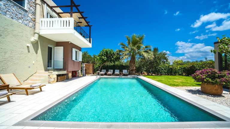Die Villa bietet Platz für bis zu acht Gäste in vier Schlafzimmern und verfügt über ein Wohnzimmer sowie eine voll ausgestattete Küche. Die Ausstattung umfasst zwei Badezimmer, einen Flachbild-TV, einen DVD-Player und kostenloses Wifi. Für zusätzlichen Komfort sorgt die Klimaanlage.