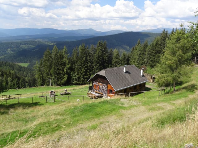 Die Hütte liegt auf ca 1050 m Seehöhe mitten in einem Waldgebiet in Alleinlage. Um die Hütte herum befinden sich unsere Weiden für das Jungvieh. Die Hütte ist eingezäunt und ein Autoabstellplatz ist auch vorhanden.