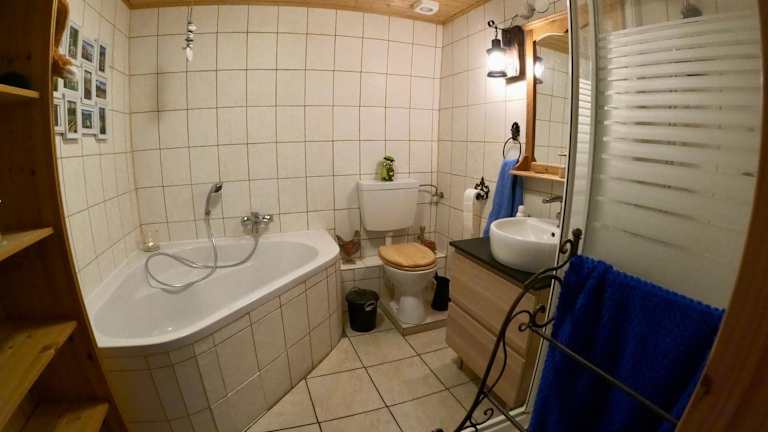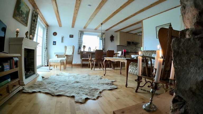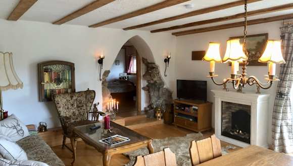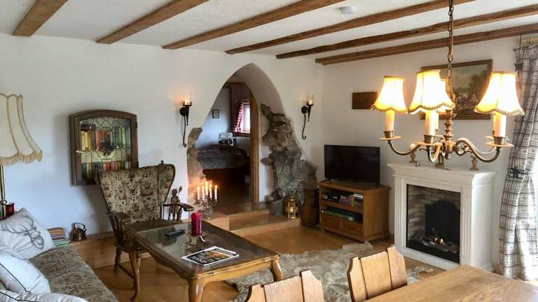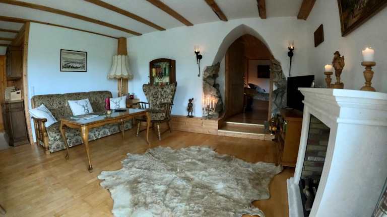 Die Ferienwohnung umfasst zwei Schlafzimmer und ein Wohnzimmer mit einem Satelliten Flachbild-TV. Eine gut ausgestattete Küche ermöglicht das Zubereiten eigener Mahlzeiten. Das Badezimmer verfügt über eine Dusche und eine Badewanne, und Handtücher sowie Bettwäsche werden bereitgestellt. Eine Terrasse mit Bergblick lädt zum Entspannen ein.