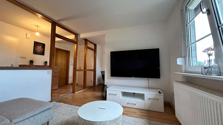 Die Ferienwohnung verfügt über 2 Schlafzimmer, ein Wohnzimmer mit einem Flachbild-TV und eine gut ausgestattete Küche mit Kühlschrank und Geschirrspüler. Ein Badezimmer mit Dusche sowie Handtücher und Bettwäsche sind ebenfalls vorhanden.