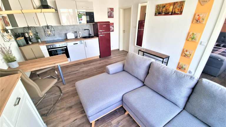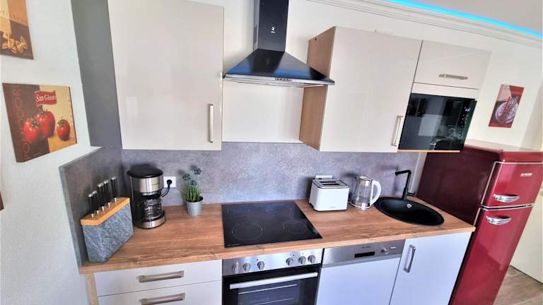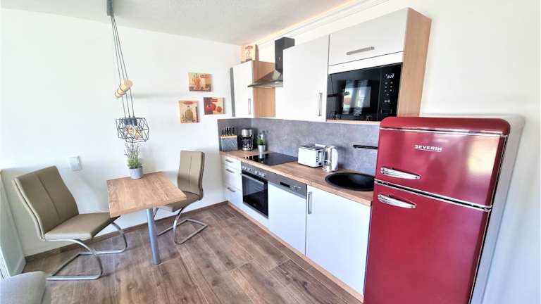 Die Unterkunft verfügt über eine voll ausgestattete Küche mit zahlreichen Geräten, darunter Kühlschrank, Geschirrspüler und Kaffeemaschine. Ein Grill steht ebenfalls zur Verfügung, um im Freien zu kochen und zu geniessen.