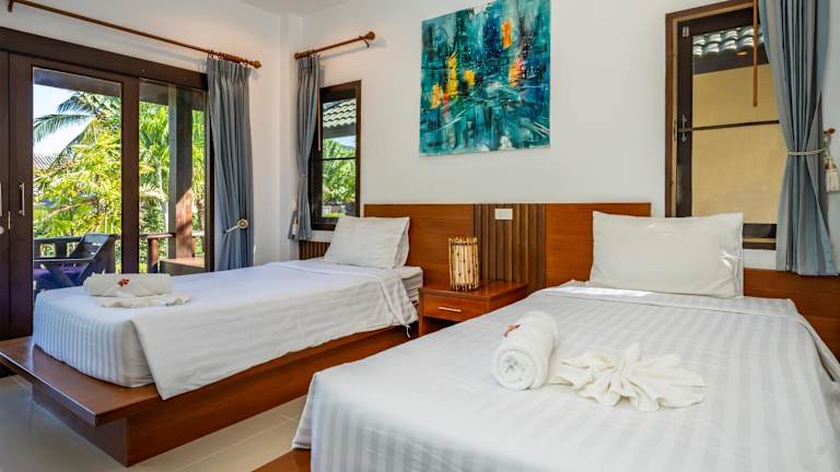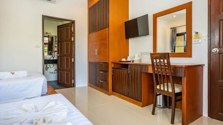 Die Zimmer im Phatcharee Resort sind mit einem Ventilator oder einer Klimaanlage ausgestattet und verfügen über ein eigenes Bad sowie einen grossen, eigenen Balkon.