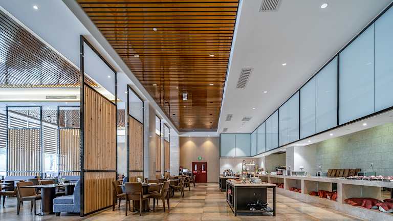 Die Gäste können ein Frühstück in Buffetform geniessen. Zusätzlich stehen diverse Verpflegungsmöglichkeiten im Restaurant zur Verfügung, welches amerikanische Küche anbietet.