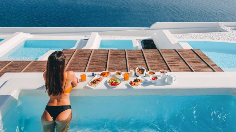 Die gastronomischen Einrichtungen umfassen ein Restaurant, ein Café und eine Bar. Täglich wird ein nahrhaftes À-la-carte-Frühstück serviert, das entweder auf dem Zimmer oder am privaten Pool eingenommen werden kann. Das Mittag- und Abendessen besteht aus modernen mediterranen Gerichten, die aus frischen Produkten zubereitet werden. Zudem bietet das Hotel spezielle Verpflegungsangebote für Gäste mit besonderen Ernährungsbedürfnissen.