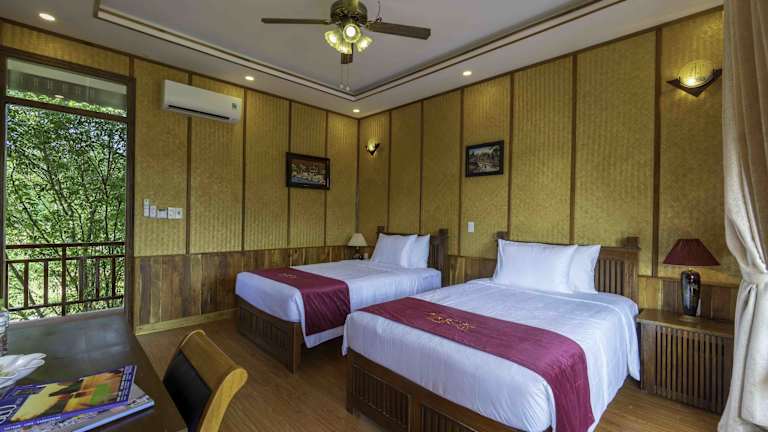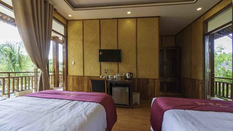 Die klimatisierten Zimmer des Phu Quoc Bambusa Resorts sind ausgestattet mit einem Kleiderschrank, Wasserkocher, Minibar, Safe und Flachbild-TV. Jedes Zimmer verfügt über einen Balkon und ein eigenes Badezimmer mit Dusche. Einige Zimmer enthalten auch eine Küche mit Mikrowelle und Herdplatte. Für die Bequemlichkeit der Gäste sind Bettwäsche und Handtücher bereitgestellt.