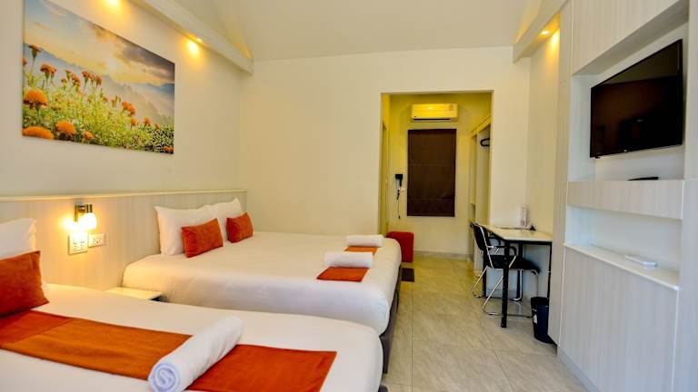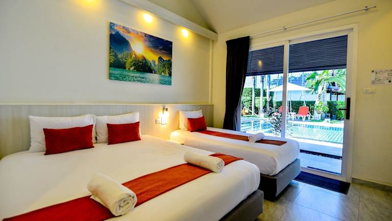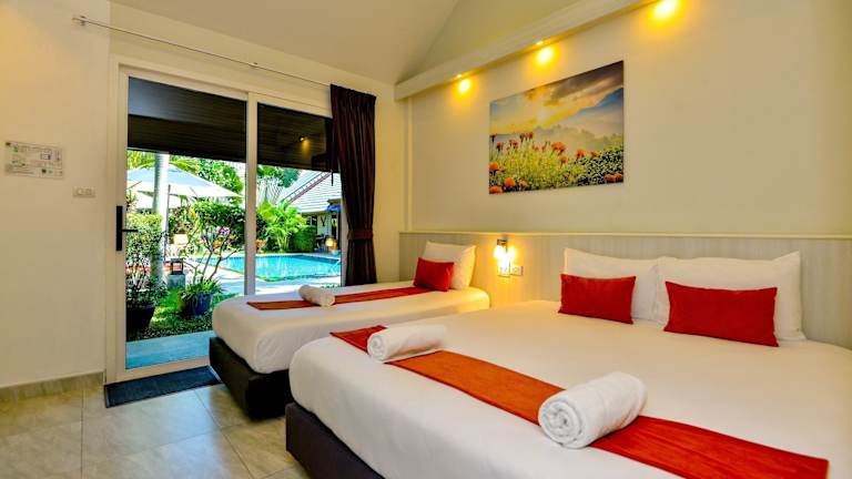 Die Zimmer des Hotels sind um den Aussenpool angeordnet und bieten einen Flachbild-Kabel-TV, einen Safe sowie einen Kühlschrank. Jedes Zimmer ist mit einem eigenen Bad ausgestattet, das über eine Kalt- und Warmwasserdusche verfügt. Die Ausstattung sorgt für eine angenehme Bequemlichkeit während des Aufenthalts.