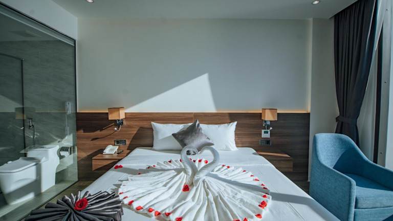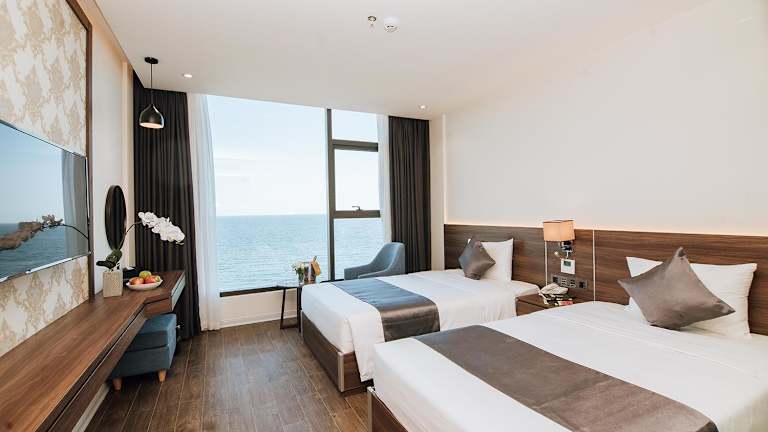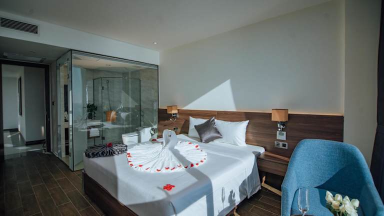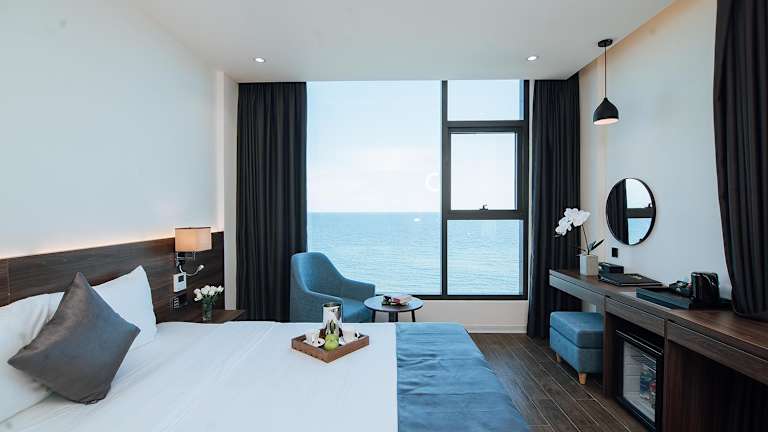 Die Gästezimmer sind ausgestattet mit Klimaanlage, einem Flachbild-TV mit Kabelkanälen, einem Kühlschrank, einem Wasserkocher, einem Bidet, kostenlosen Pflegeprodukten sowie einem Schreibtisch. Jedes Zimmer verfügt über ein eigenes Badezimmer mit Dusche und Haartrockner. Mehrere Zimmer bieten zudem einen Meerblick und verfügen über einen Kleiderschrank.