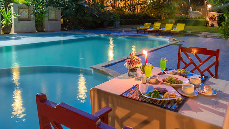 Im Resort stehen verschiedene gastronomische Einrichtungen zur Verfügung, wie ein Restaurant, ein Café und eine Bar. Es wird täglich ein reichhaltiges Frühstücksbuffet sowie Mittagessen angeboten. Die Speisekarte umfasst Diätgerichte und Kindermenüs. Zimmerservice kann ebenfalls auf Anfrage arrangiert werden.