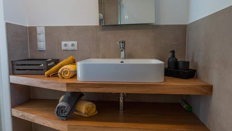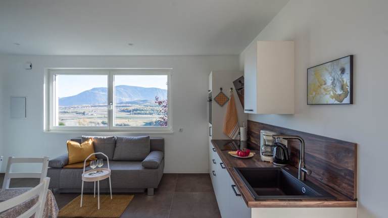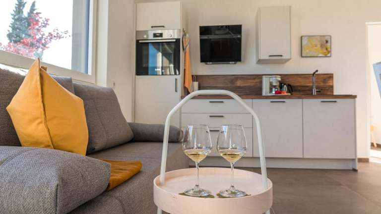 Die Ferienwohnung verfügt über ein separates Schlafzimmer, ein Wohnzimmer, eine voll ausgestattete Küche und ein Badezimmer. Zur Ausstattung gehört zudem ein Flachbild-TV sowie Klimaanlage.