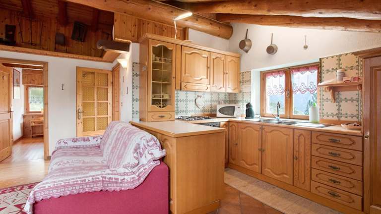 Die Ferienwohnung verfügt über 2 Schlafzimmer, 1 Badezimmer, Bettwäsche, Handtücher sowie einen TV mit Kabelkanälen. Eine voll ausgestattete Küche ergänzt die Ausstattung. Zudem gibt es einen Balkon mit herrlichem Bergblick.