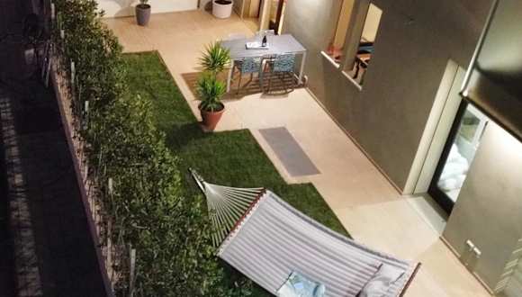 Die Ferienwohnung verfügt über zwei Schlafzimmer, ein Wohnzimmer sowie eine voll ausgestattete Küche mit Kühlschrank und Kaffeemaschine. Es sind zwei Badezimmer vorhanden, die jeweils mit Bidet und Dusche ausgestattet sind. Handtücher und Bettwäsche werden zur Verfügung gestellt. Die klimatisierten Räume beinhalten zudem eine Veranda bzw. Patio.