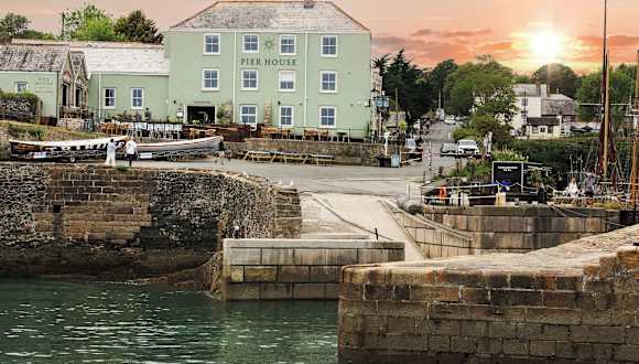Im Restaurant des Pier House werden moderne Gerichte der britischen Küche serviert. Gäste können frisch zubereiteten Fisch aus der Region und Meeresfrüchte geniessen. Die Bar lädt ein, bei Ales zu verweilen, und im angrenzenden Harbourside Inn sind traditionelle Pub-Gerichte auf einer grossen Terrasse erhältlich.