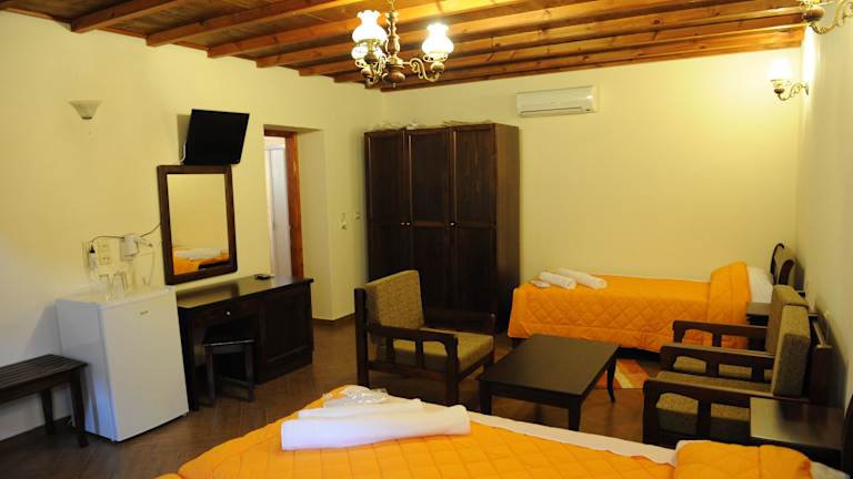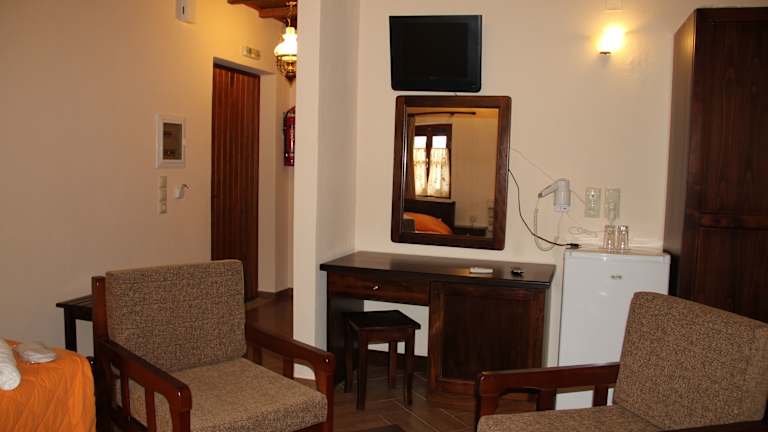 Die Zimmer im Piges Hotel sind ausgestattet mit Klimaanlage, einem Schreibtisch, einem Flachbild-TV und einem eigenen Badezimmer. Dazu gehören Bettwäsche, Handtücher sowie eine Veranda oder ein Patio mit Blick auf die Berge. In den Wohneinheiten sind Kühlschrank und Safe vorhanden, und einige Zimmer bieten zusätzlich einen Balkon.