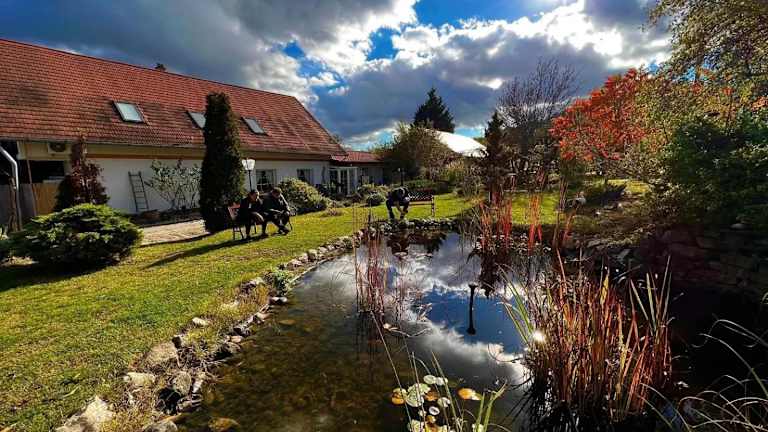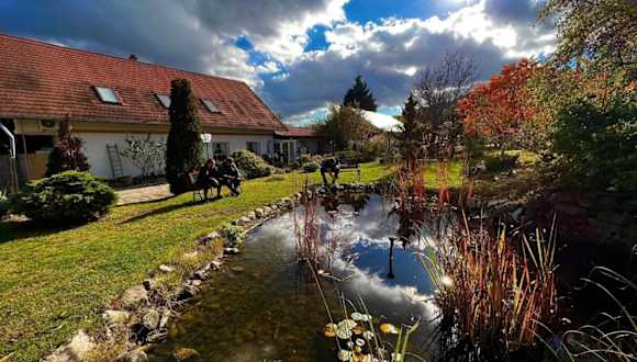 Pilisi Lovas Major bietet Übernachtungsmöglichkeiten in einer heimeligen Umgebung mit Parkettböden, einem Garten und einer Terrasse. Gäste haben Zugang zu einer Bar und weiteren Annehmlichkeiten. Die Unterkunft ist für Familien geeignet und es stehen Nichtraucherzimmer zur Verfügung.