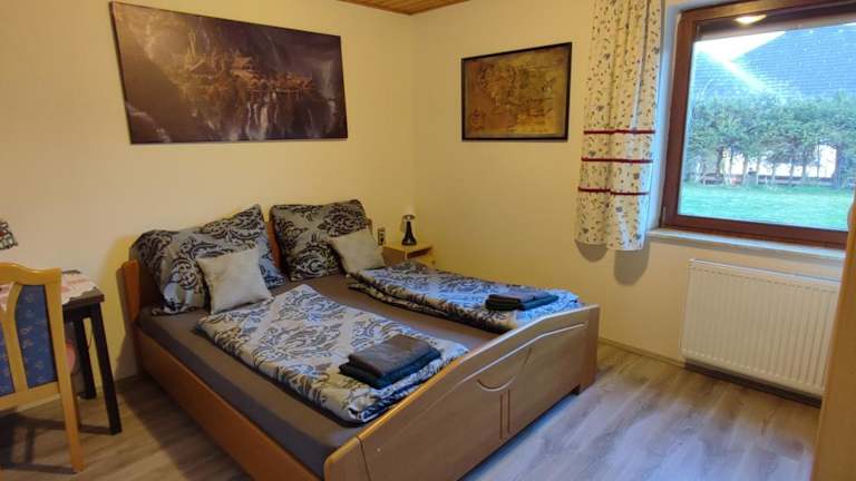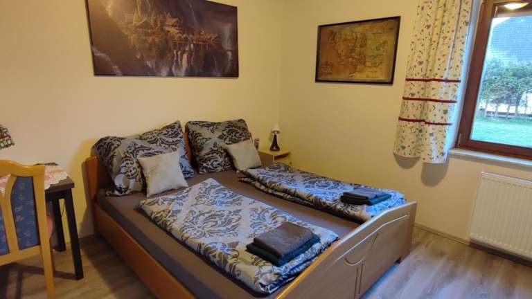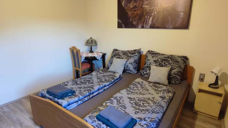 Die Ferienwohnung verfügt über 2 Schlafzimmer, ein Wohnzimmer mit Flachbild-TV, eine gut ausgestattete Küche mit Kühlschrank und Ofen sowie 1 Badezimmer mit Dusche. Handtücher und Bettwäsche werden bereitgestellt, um den Gästen Bequemlichkeit zu gewährleisten.