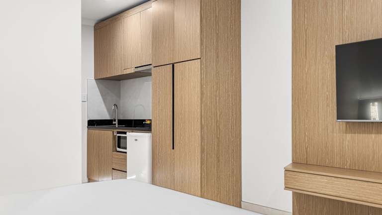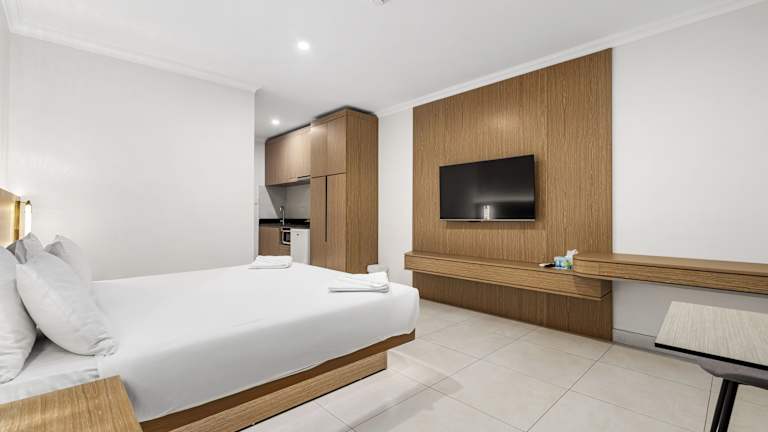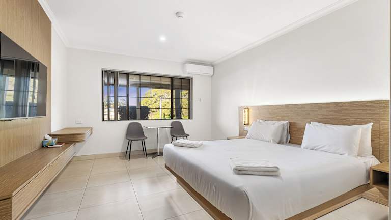 Die Zimmer sind ausgestattet mit einem Queensize-Bett, einer Klimaanlage, Heizung, einer Kochnische sowie einer Mikrowelle. Zusätzlich stehen ein Kühlschrank und eine Tee-/Kaffeemaschine zur Verfügung. Zur Ausstattung gehören auch ein Flachbild-TV, ein Telefon und kostenloses Wifi. Die Badezimmer sind mit einer Dusche und einer Whirlwanne ausgestattet und bieten spezielle Kosmetikartikel. Des Weiteren sind rollstuhlgerechte Zimmer mit barrierefreiem Badezimmer buchbar. Familien- und Nichtraucherzimmer sind ebenfalls erhältlich.