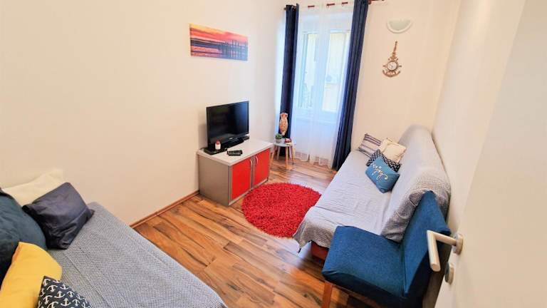 Die Pirates' Bay Apartment - Omiš bietet Übernachtungsmöglichkeiten in einer heimeligen Ferienwohnung, die einen herrlichen Meerblick sowie einen Blick auf den Garten gewährt. Die Ferienwohnung verfügt über kostenloses WLAN und Klimaanlage.
