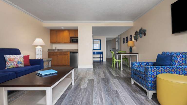 Die Suiten sind mit einem Kingsizebett, einem Sofabett sowie einer Teezubereitungsmöglichkeit ausgestattet. Viele Suiten verfügen über einen Balkon mit Meerblick. Weitere Annehmlichkeiten sind ein Kühlschrank, zwei Flachbild-TVs und ein Haartrockner im Badezimmer. Zudem sind rollstuhlgerechte Zimmer verfügbar. Familienzimmer sind ebenfalls buchbar.