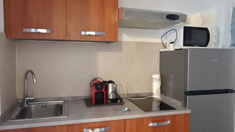 Die Ferienwohnung besteht aus zwei Schlafzimmern und einem Badezimmer, das mit einem Bidet, einer Dusche und einem Haartrockner ausgestattet ist. Eine Küchenzeile steht den Gästen zur Verfügung und ist möbliert mit einem Kühlschrank, einem Ofen, einer Mikrowelle, einer Kaffeemaschine und einem Wasserkocher. Die gesamte Unterkunft ist klimatisiert.