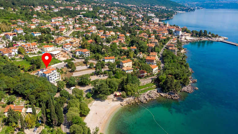 Die Unterkunft Plage Lovran Residence befindet sich in Lovran in der Region Gespanschaft Primorje-Gorski kotar, nahe den Stränden Peharovo und Cipera. Der Strand Kvarner ist 1,3 km und der Strand Medveja 2,2 km entfernt. Der nächstgelegene Flughafen ist der Flughafen Rijeka, welcher 53 km entfernt liegt.