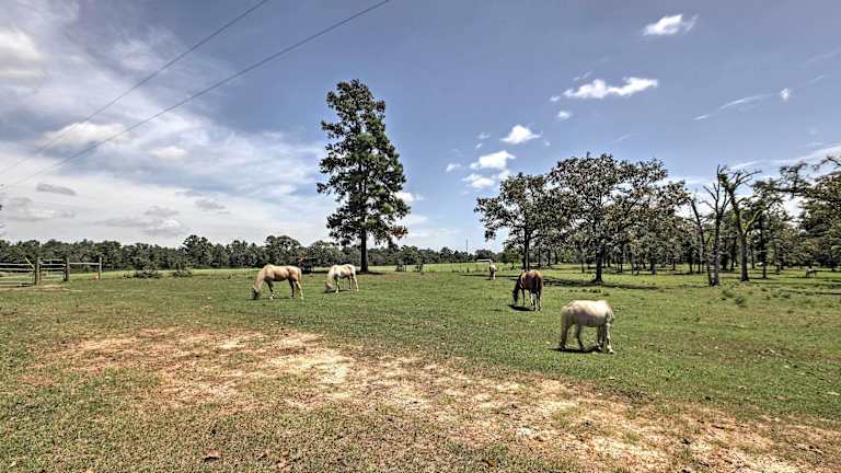 Das Ferienhaus befindet sich in Magnolia, 43 km von Cynthia Woods Mitchell Pavilion entfernt und 44 km von Woodlands Town Center. Die Umgebung bietet Zugang zur Natur mit einem grossen Grundstück von 50 Acres, inklusive einem Teich und einem Feuerplatz.