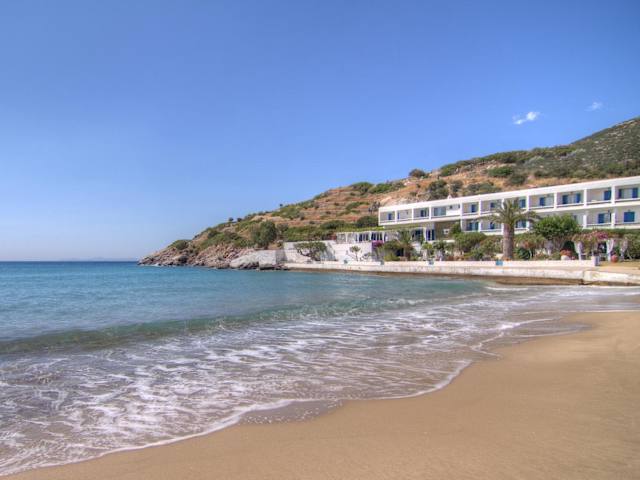 Das Platys Gialos Hotel befindet sich direkt am Strand von Platis Yalos, umgeben von einer üppigen Gartenlandschaft. Der Hafen der Insel ist 13 km entfernt.