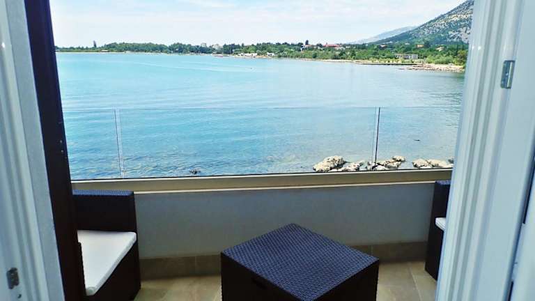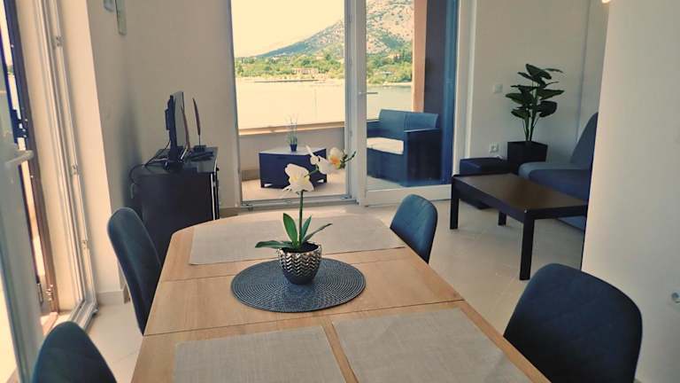 Plava Laguna with beautiful seaview bietet einen eigenen Strandbereich sowie einen herrlichen Blick auf die Berge und das Meer. Die klimatisierte Unterkunft ist ideal für Ferienaufenthalte gestaltet und ermöglicht einen entspannenden Aufenthalt.